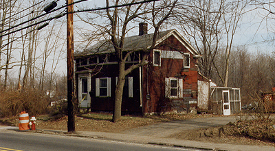 The photo on the left is from the Library of Congress, American Memory resource pages that contains not only the two photos displayed here, but also scale drawings and a history of the house. The earliest part of the house was dated at about 1776 and believed to be built by Cornelius Van Wagoner. These older photographs are credited to Nathaniel R. Ewan, Photographer, March 2, 1939 and made for the Historic American Buildings Survey. This is the current location of Ameri-car, a used car business.