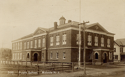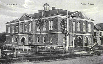 The postcard view from the 1930's showing the Midvale Post Office (right), Shippee's Pharmacy (center), the Firehouse and the intersection of Railroad Avenue. The Post Office building replaced the wooden structure as seen in the color tinted photo above. You will also notice that the dirt road has now been paved. Railroad Avenue, on the right, as mentioned, ended at the Midvale Station.